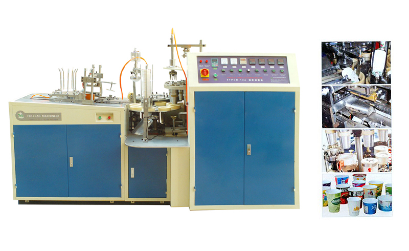 打印好的紙進(jìn)入刀模,打出扇形紙,即紙杯壁的展開形狀。這張扇形紙被收集并送到成型機(jī)中,紙立即卷成杯子的形狀。同時(shí),模具在紙張的接縫處提供熱量,使PE被熱破壞并相互粘合,紙杯底部立即粘合。然后模具推著杯口,讓杯口的紙卷起來,熱固定,形成杯邊。這些成型步驟可以在一秒鐘內(nèi)完成。